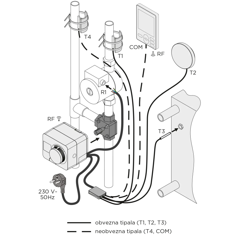 - Possibility of connecting up to 4 sensors (supply, outdoor, room/return, power source).