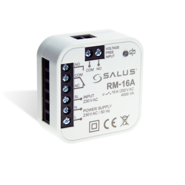 Relay module RM-16A opens and closes the circuit to affect the work of other devices.